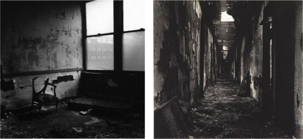 Peter Hujar’s photos from inside the waterfront buildings whisper at this transitory nature of mankind’s hold and influence on his surroundings. The inclusion of the “New York World-Telegram” sign in Baldessari’s previous photo similarly hints at this- a newspaper defunct for several years by 1971, yet whose ghostly presence still dominates the city space.