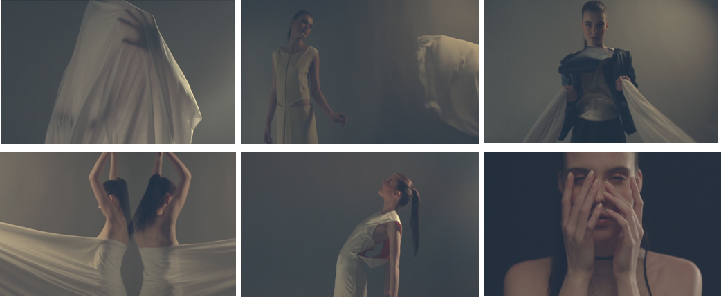 This showcasing of aesthetic form over conventional narrative is seen in Zissou Pictures’ 2012 film for designer Katherine Bowling, in which the model’s mellifluent dance and the fluidity of fabric unite to form the narrative itself. This union of billowing texture with the up-close sensuality of skin within fabric casts the body itself as the film’s landscape, exaggerated and flaunted in movements of undulating dance. The fabric and body become the unfolding action, creating a narrative of mood, tone, and texture that is purely visual. Although an ambiguous form of narrative, it is one with which the viewer must engage in order to construct their own fantasy from the fragmented images shown.