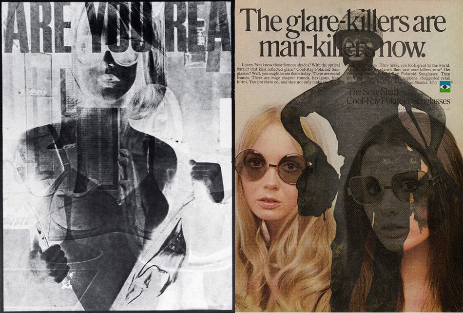 It’s an extension to his previous project, Are You Rea (1968), in which he superimposed both sides of a magazine page into one image, resulting in hilarious and sinister yet, more often than not, nonsensical fusions of image and text. In its epigraph, he quoted André Breton, ‘the mind has a marvellous facility in seizing the slightest rapport that exists between two objects taken at random’. This willingness to accept prescribed meaning is what our commercialised culture is founded on; meanings that are arbitrarily determined by advertisers.