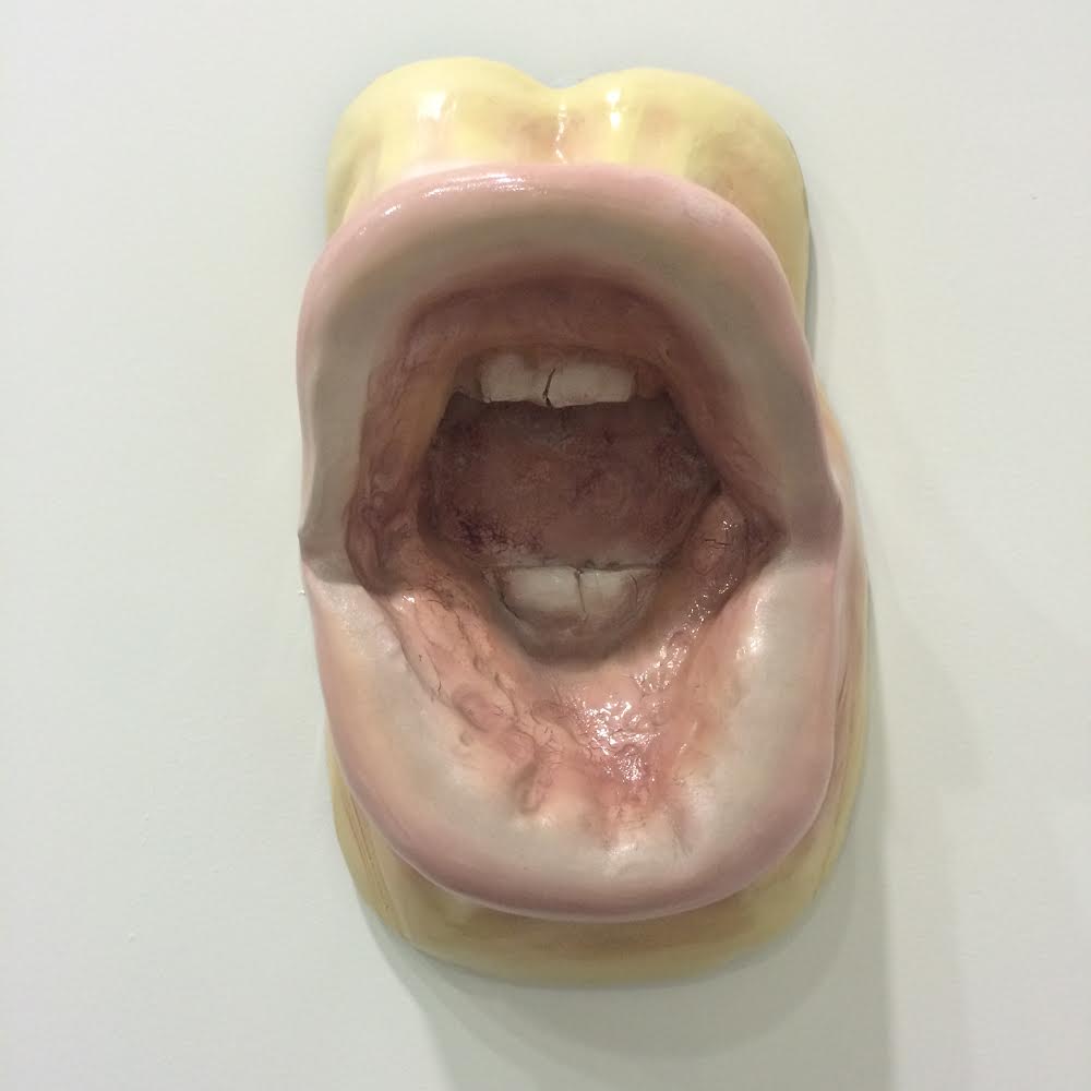 To conclude, and for want of a more universal and topical example: upon rounding the corner of the gallery, I was greeted by a glossy pair of lips. Salmon pink and puckered. An uncanny, prescient Trumpian vibe, projected across time from 1978. Entitled, “Nothing can frighten the man who hopes for nothing”