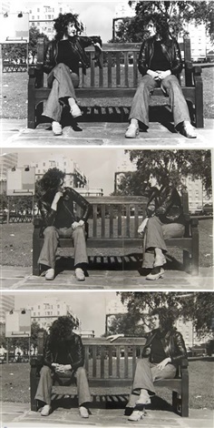 In contrast, Finn-Kelcey’s Divided Self (Speakers’ Corner)’ shows the artist sitting in conversation with herself on a bench in Hyde Park. Rather than highlighting the angst that this fragmented, uncertain experience can at times provoke, she presents both sides of herself as confident, relaxed, equal counterparts, accepting one another as they playfully try out different angles and stances, enjoying the games of identity construction. This personal process is not hidden from view but acted out brazenly within the public realm of the city, bringing to light the hidden lived experiences that so often remain invisible.